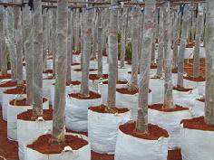Put gel bag around root of trees and cover soil. This way is quite suitable for conditions of water lack or that water resource is far from tree plantation sites.